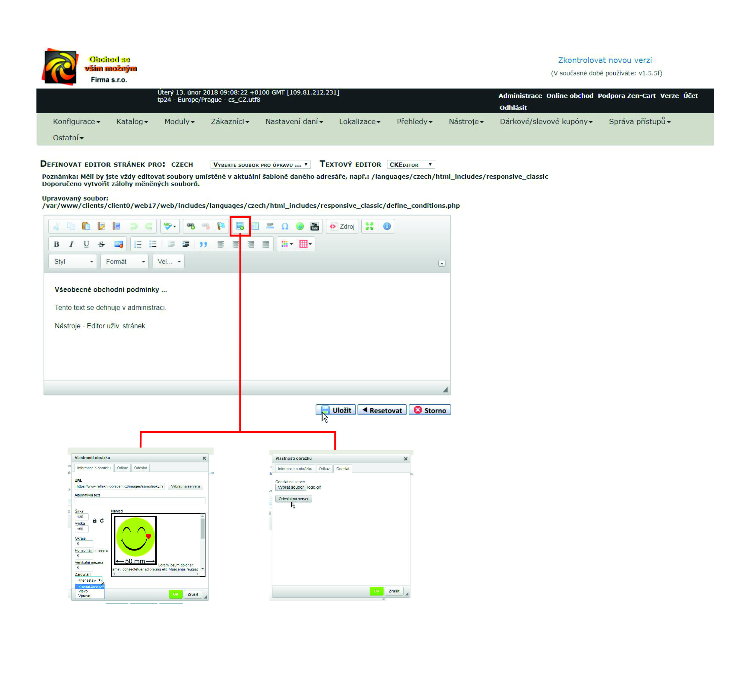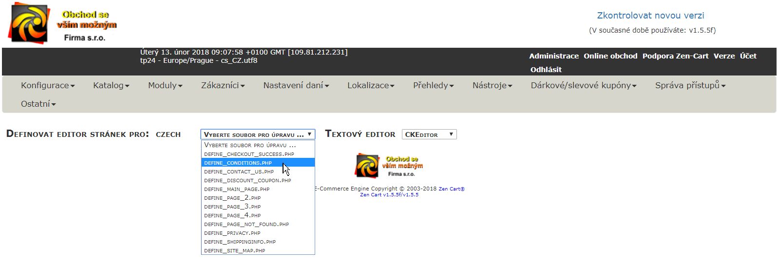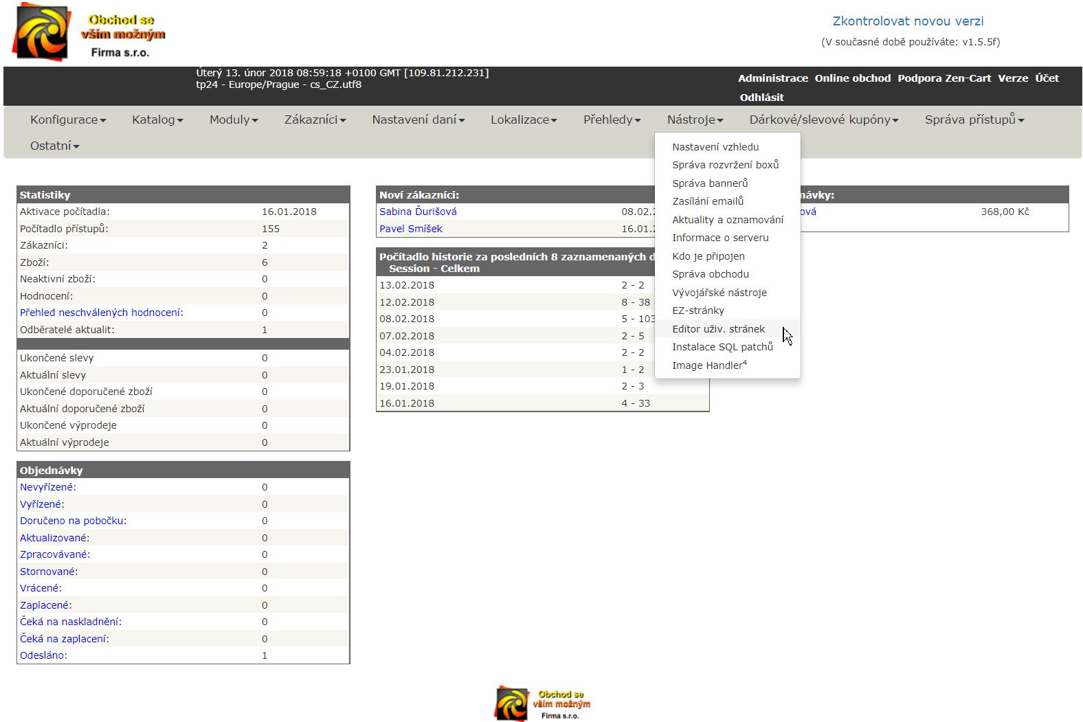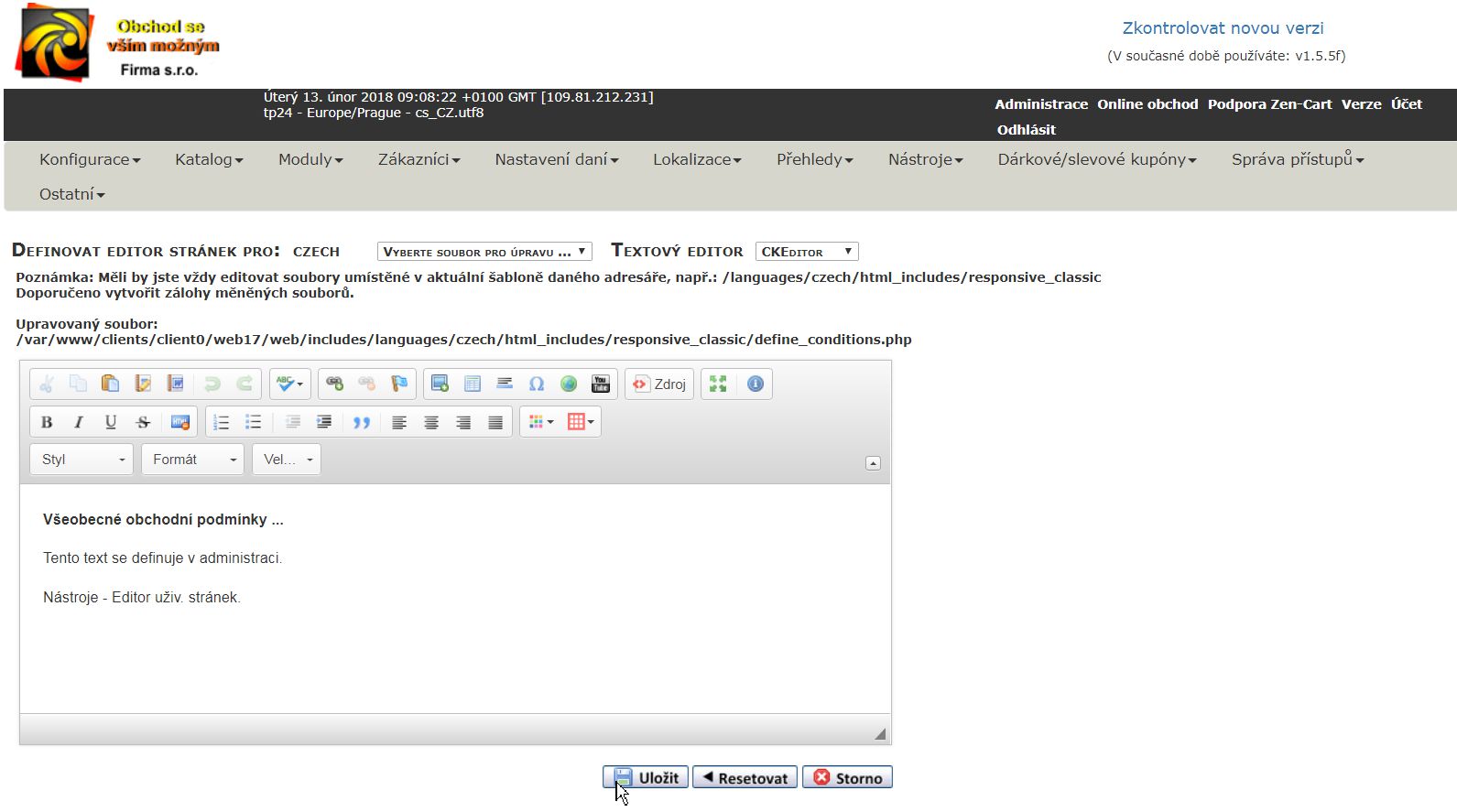 V editoru uživ. stránek si můžete nastavit texty například pro obchodní podmínky, kontakty, domovskou stránku atd....