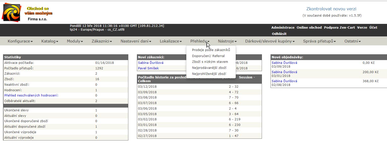Zde uvidíte přehled prodeje zákazníků, kteří u Vás nakoupili.