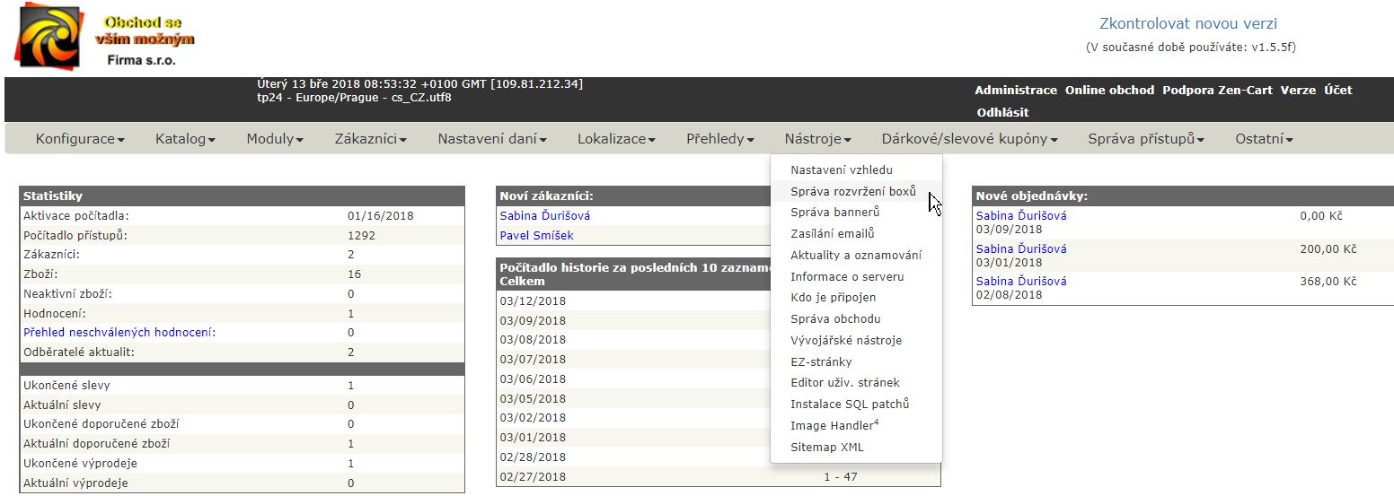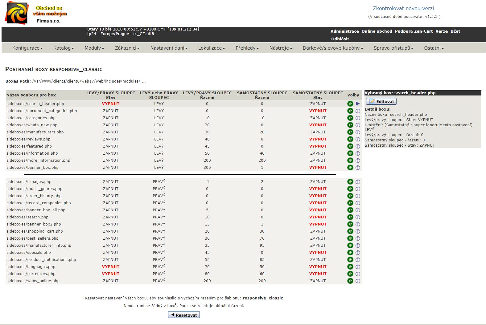 Po kliknutí na editovat můžete upravovat zobrazení boxů.