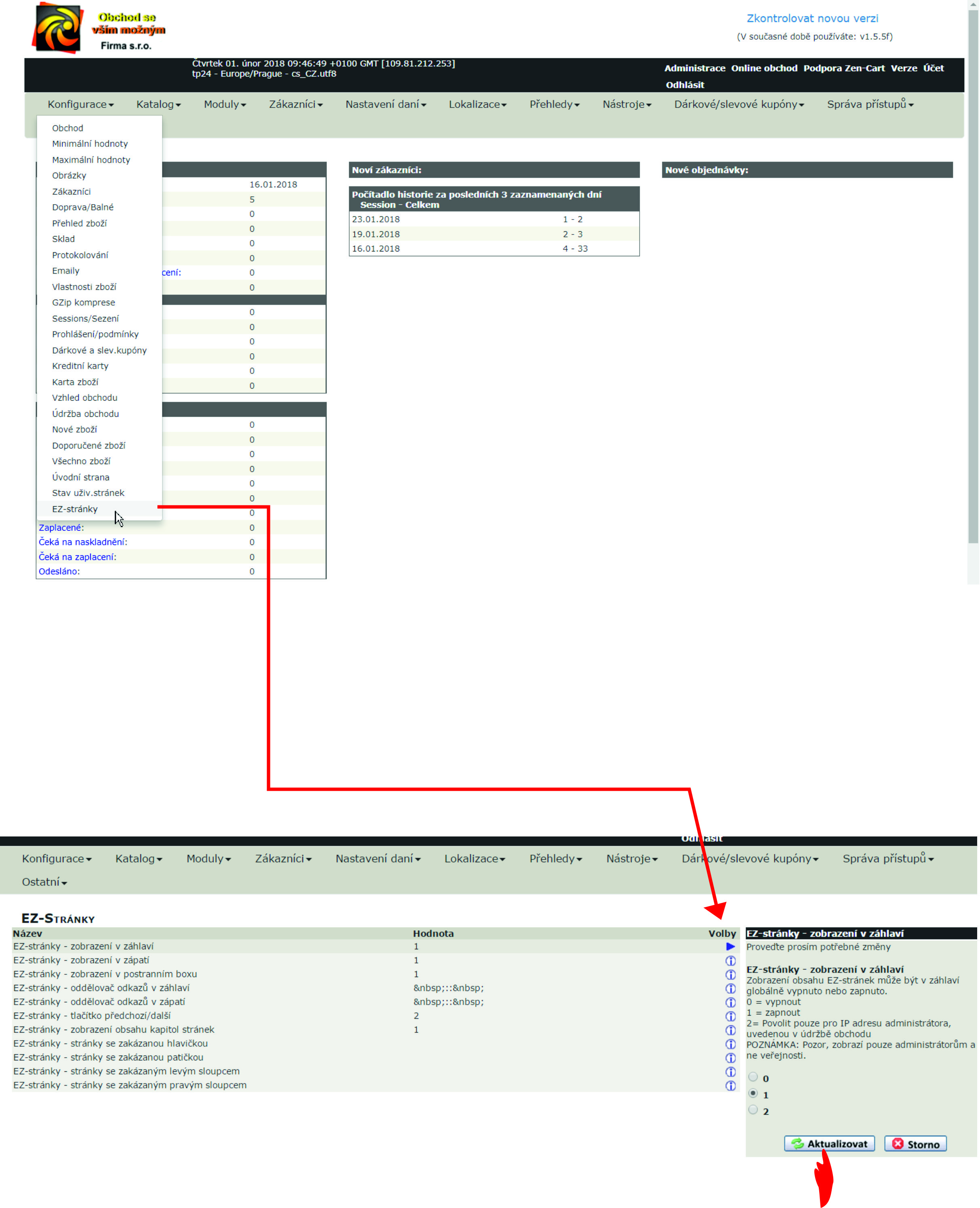 Konfigurace-> EZ-stránky
