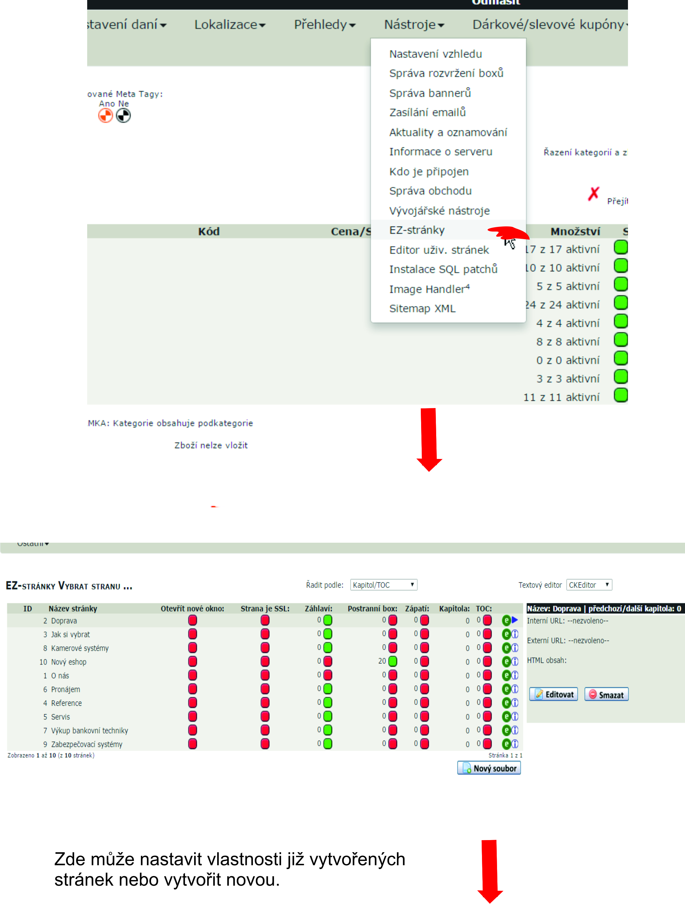 Nástroje -> EZ-stránky