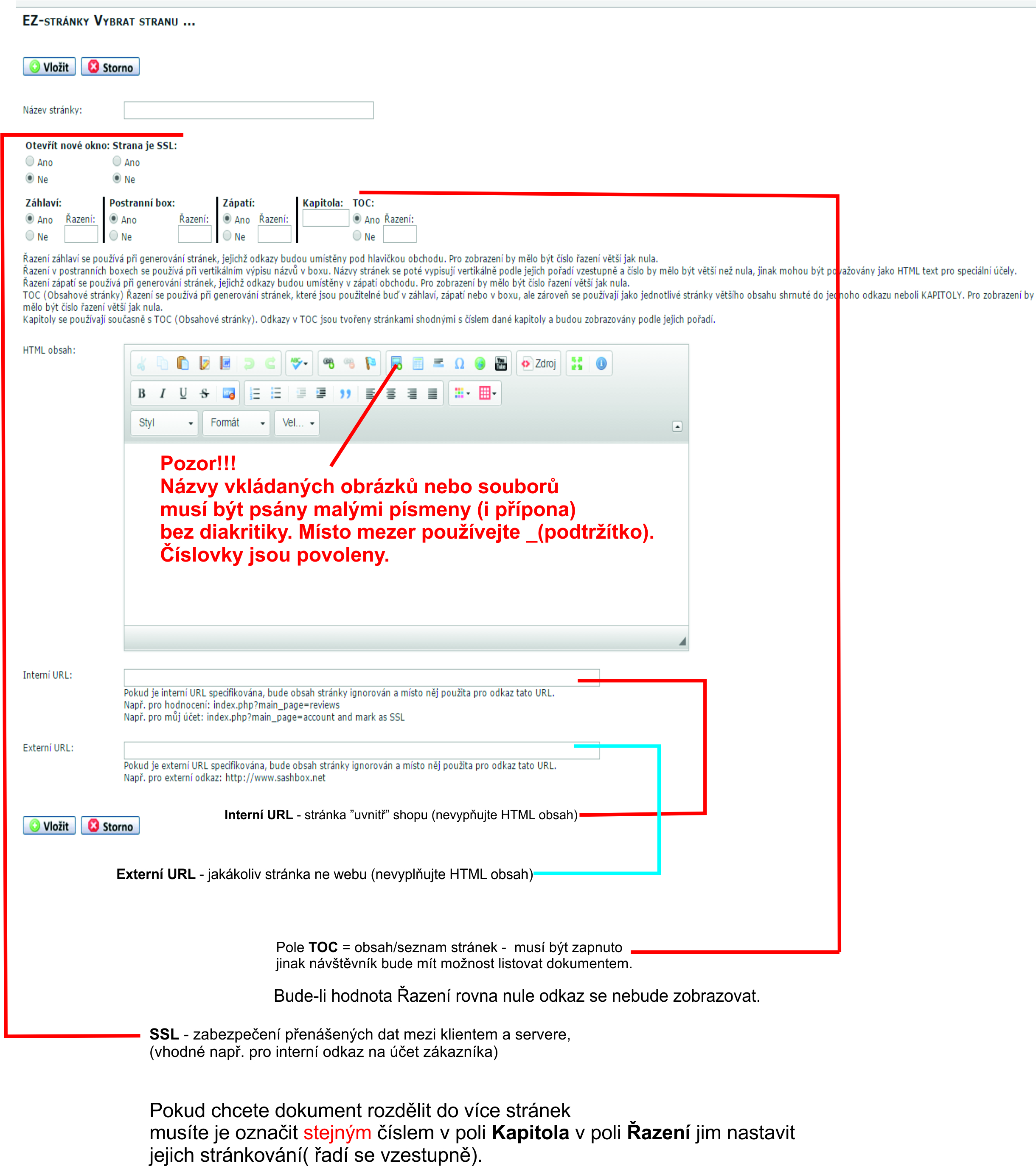 Editace a vytvoření nové EZ-stránky