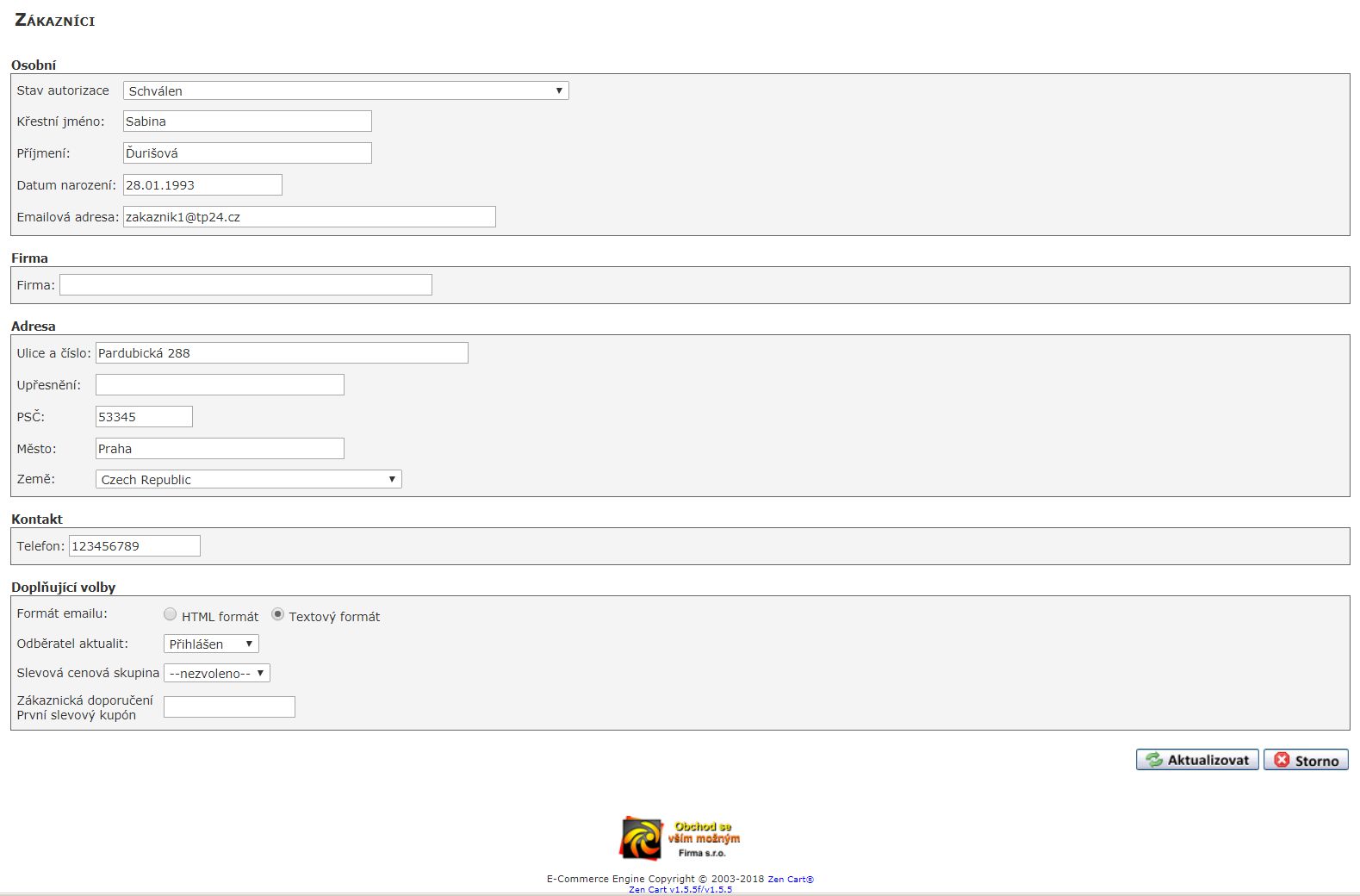 Kliknutím na Editovat se dostanete do detailu daného zákazníka.