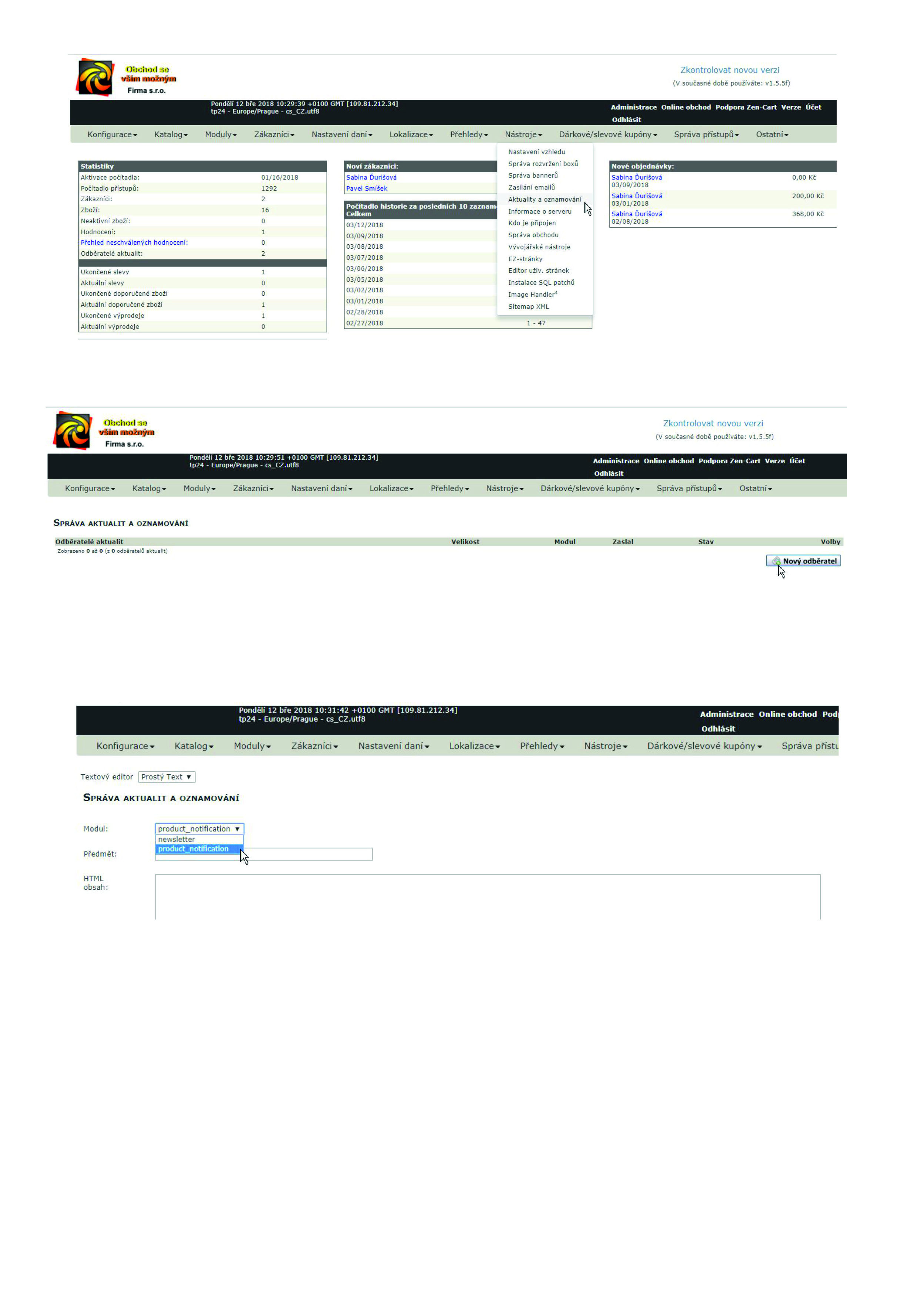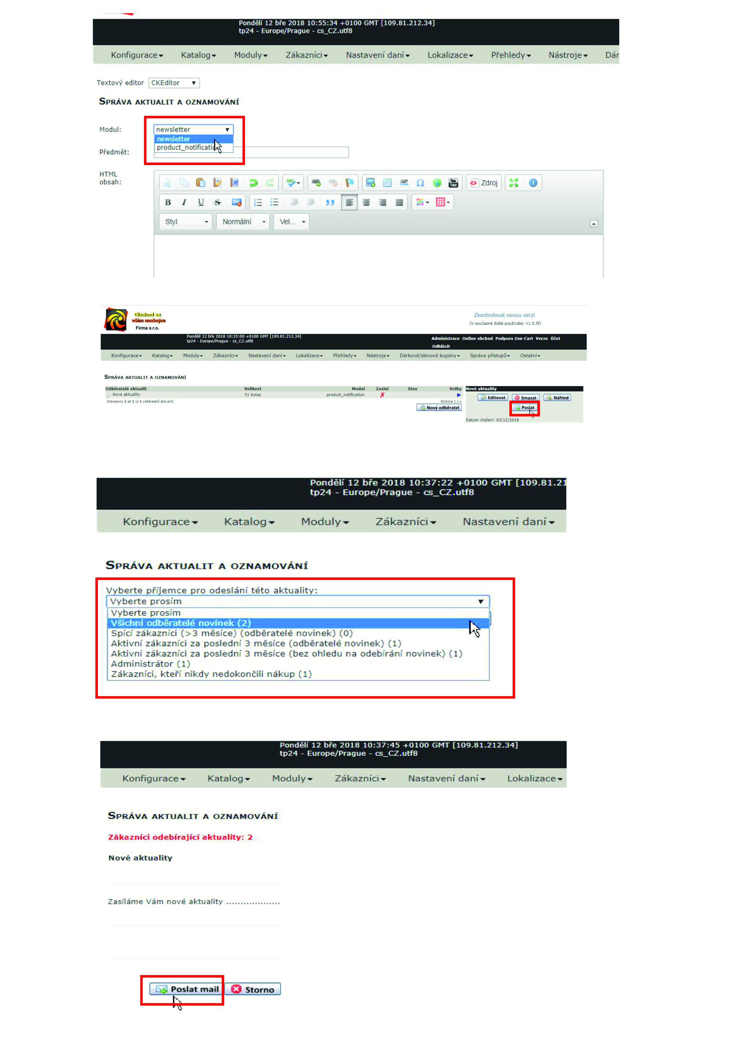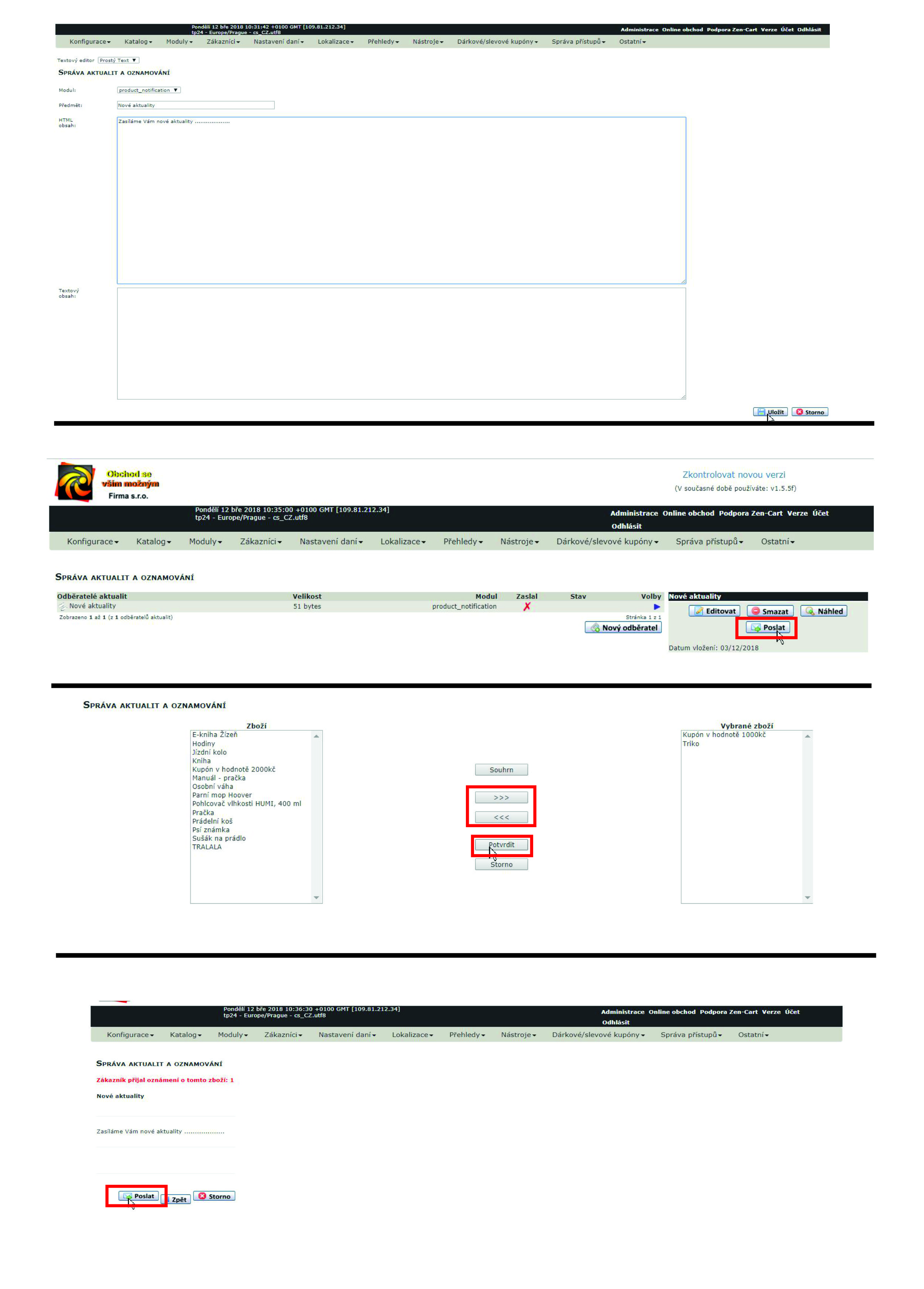 Chceteli zaslat zákazníkům nové aktulity nebo oznámení o zboží přejděte do sekce Nástroje / Aktuality a oznámení