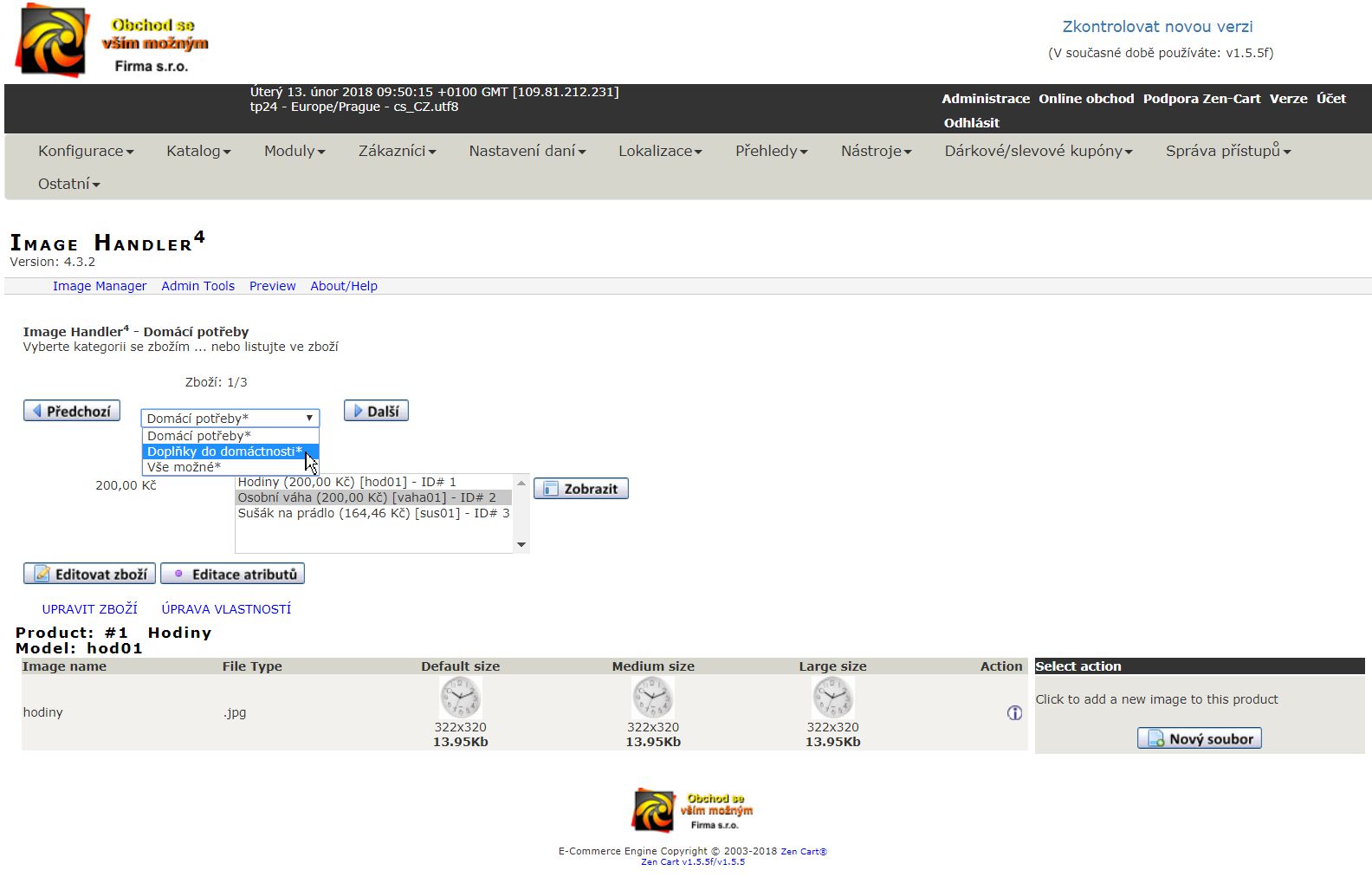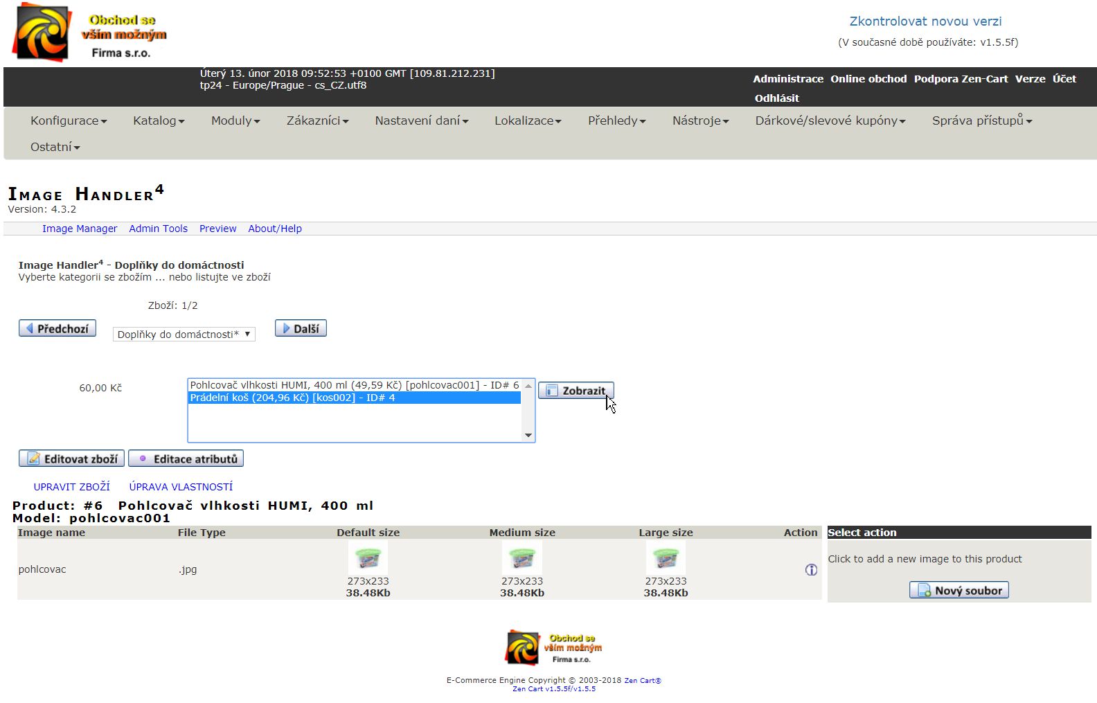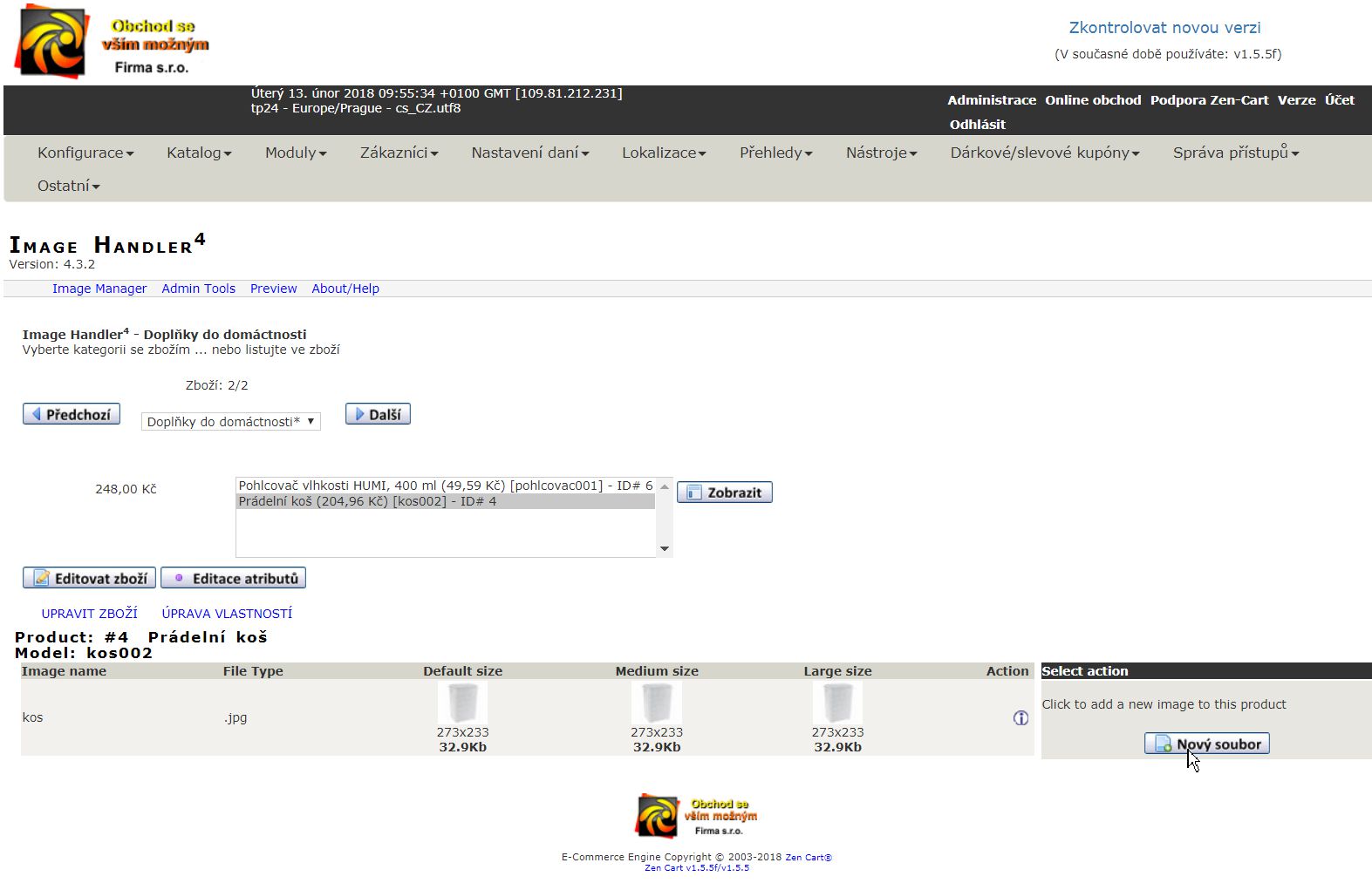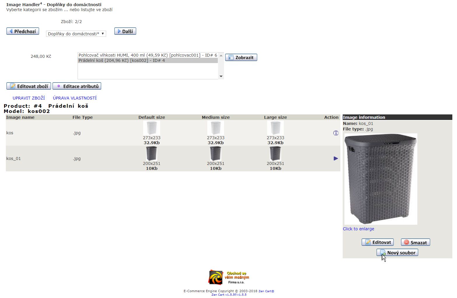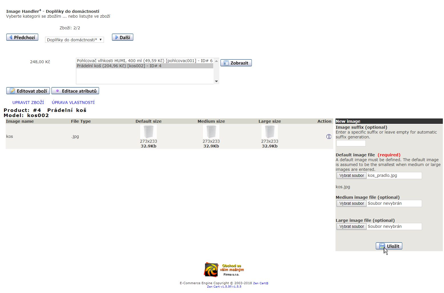 Chceteli přidat více obrázků ke zboží použíjte v administraci Image Handler.