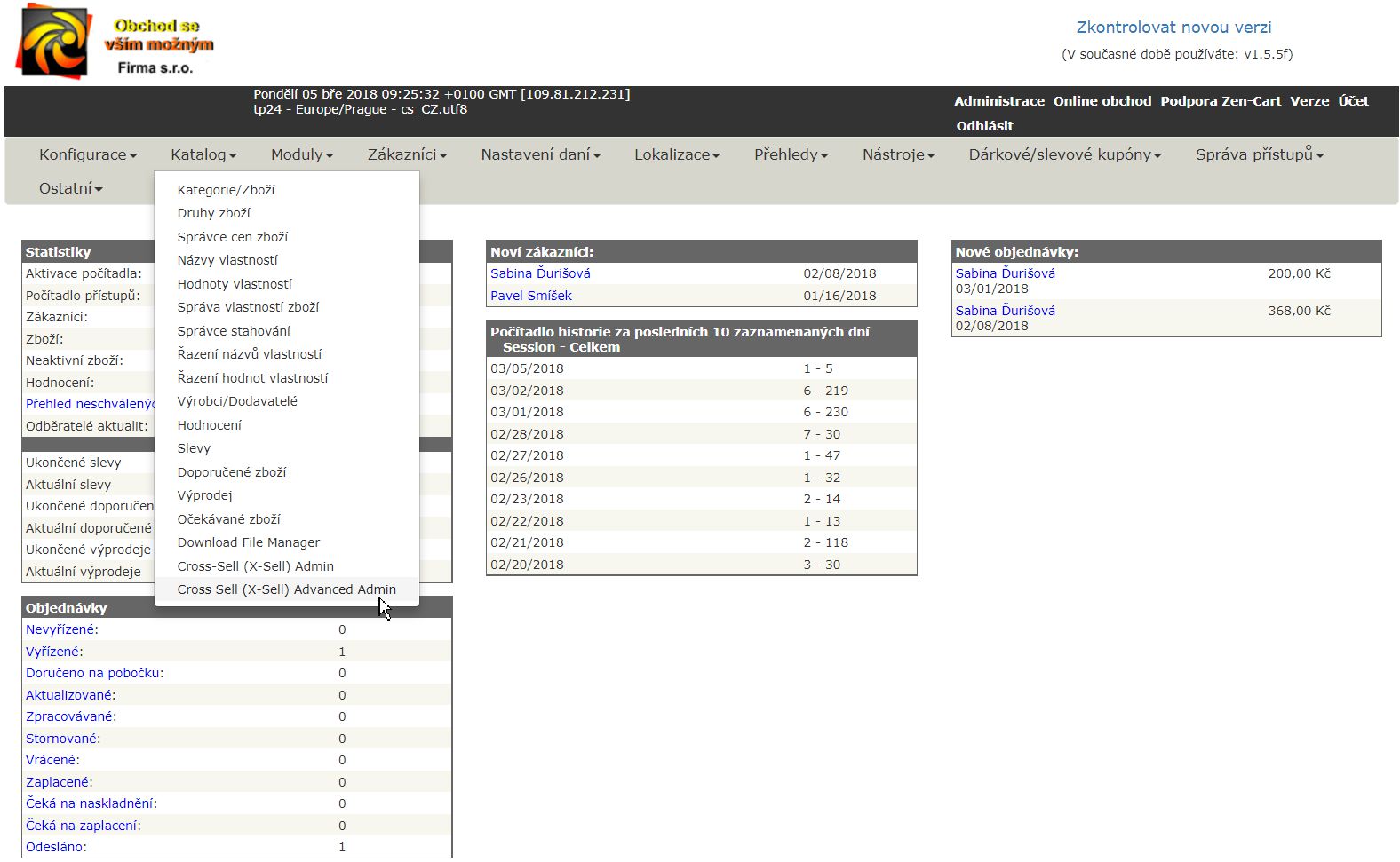 Pro používání křížového prodeje je potřeba nejdříve naistalovat modul Cross-sell.