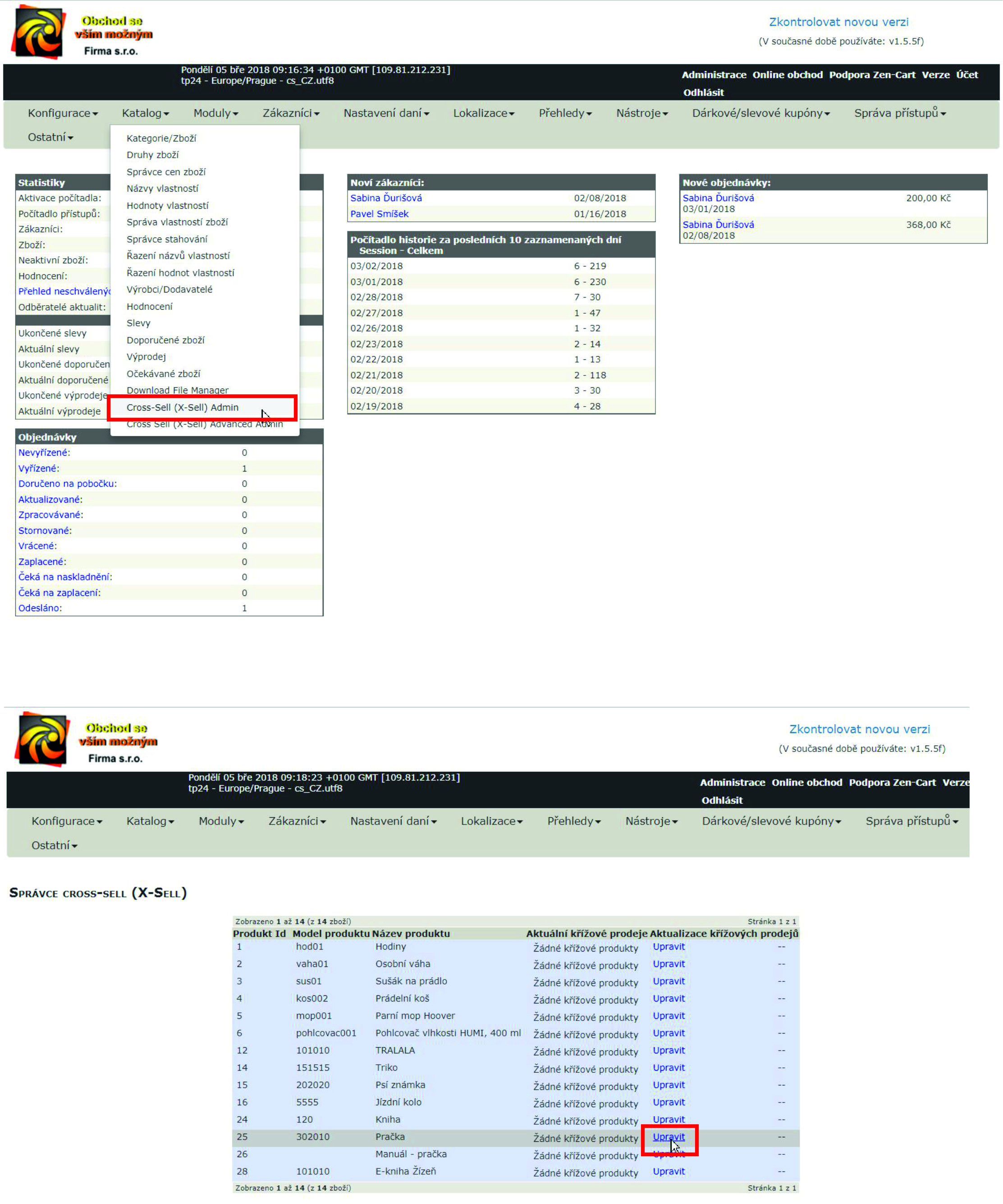 Vyberte zboží se kterým chcete udělat křížový prodej ( např.: pračka ) a klikněte na upravit.